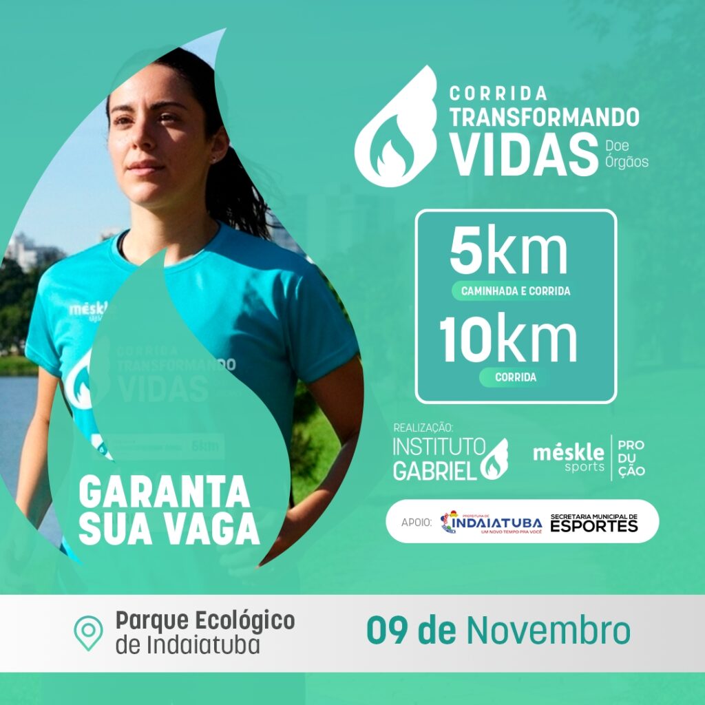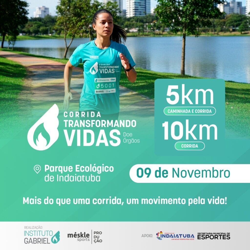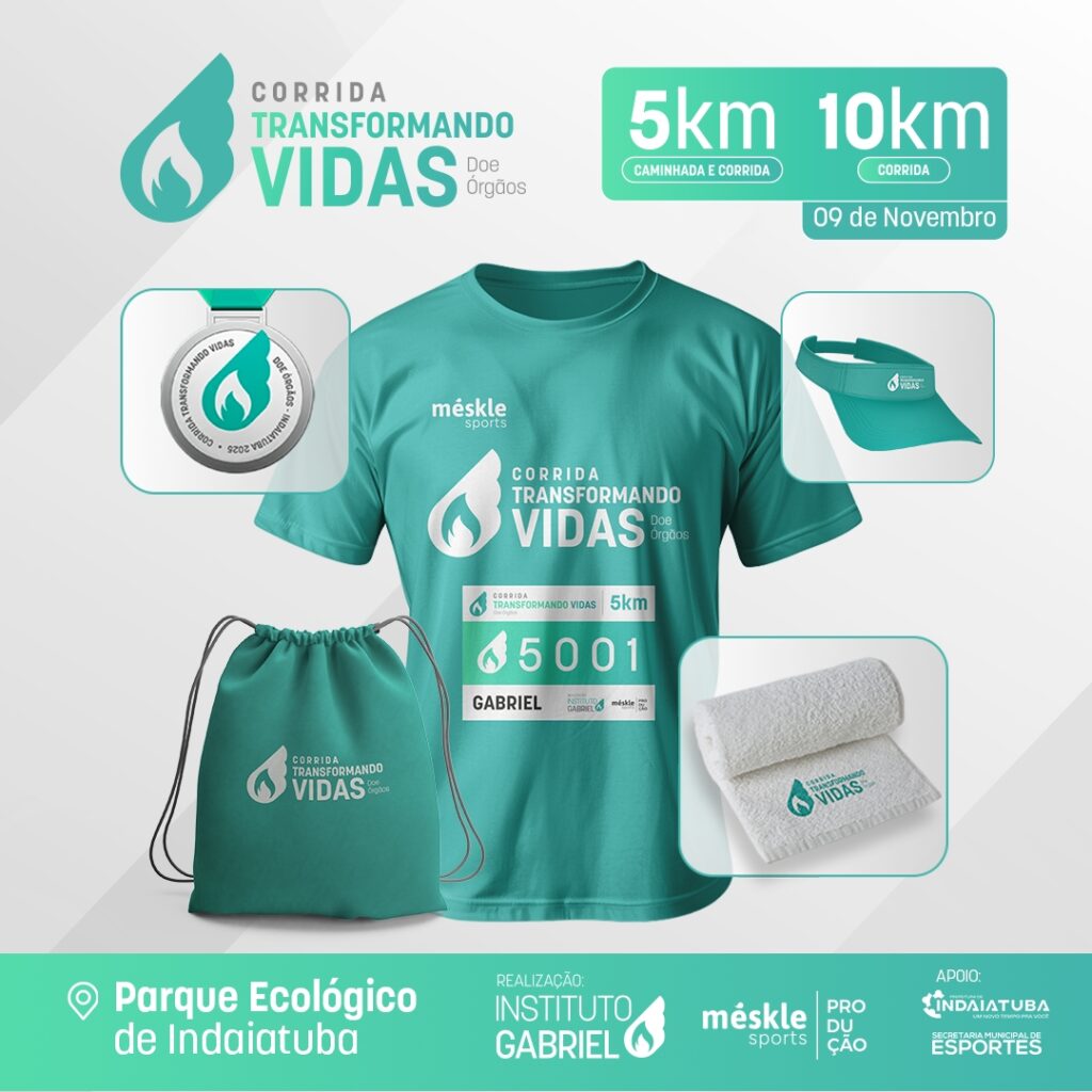 Indaiatuba, setembro de 2025 – Quem espera por um transplante não pode esperar. A sua participação pode fazer a diferença por quem corre contra o tempo. No dia 09 de novembro de 2025 (domingo), o Parque Ecológico de Indaiatuba será palco da 1ª Corrida Transformando Vidas – Doe Órgãos, uma iniciativa do Instituto GABRIEL, com realização da Méskle Sports e apoio da Prefeitura de Indaiatuba e da Secretaria Municipal de Esporte.