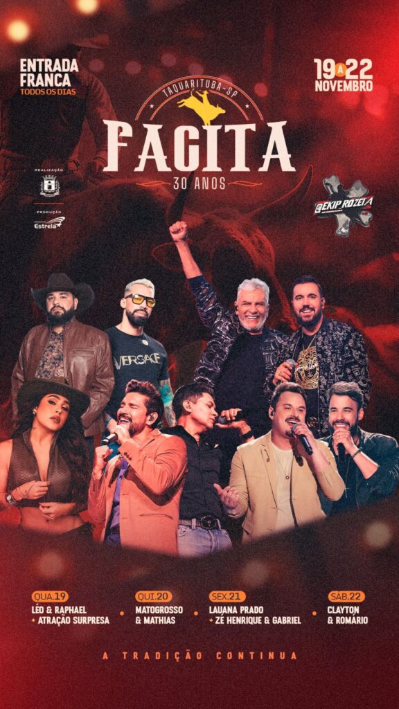 O evento marca o retorno da Ekip Rozeta para Taquarituba, cidade tradicionalmente conhecida por realizar as finais da Copa Rozeta. A Ekip Rozeta irá organizar as competições de montaria em touros.