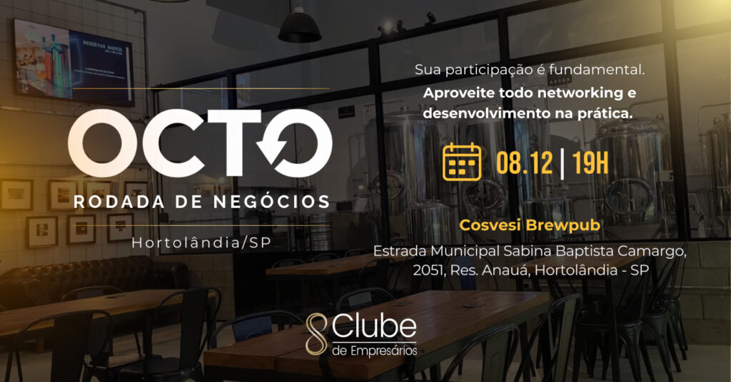 Com o avanço das atividades na cidade, o Clube já confirmou o próximo grande encontro. O OCTO de Hortolândia será realizado no dia 8 de dezembro, às 19h, no COSVESI Brewpub, localizado na Estrada Municipal Sabina Baptista Camargo, 2051 – Residencial Anauá, Hortolândia (SP).