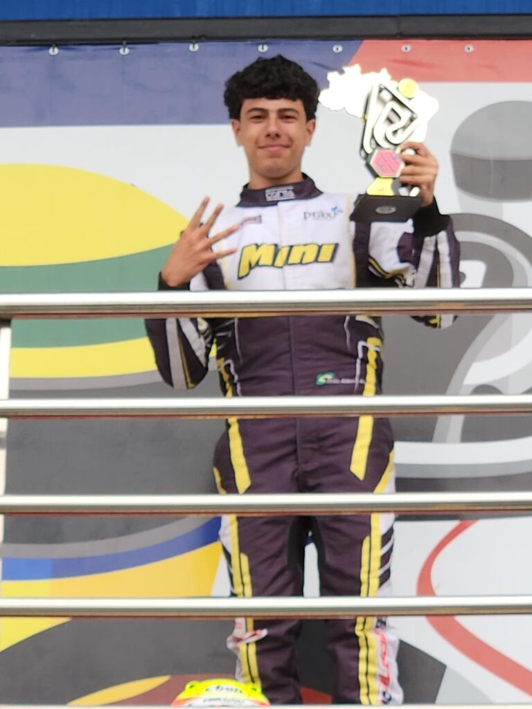 O piloto João Alécio (Veiga Motorsport / Kart Mini / Bolsa Esportiva de Paulínia) subiu ao pódio na quinta e última etapa da Copa Beto Carrero, o Open do Campeonato Brasileiro de Kart 2025, disputada na sexta-feira e sábado, dias 24 e 25 de outubro, no Kartódromo Internacional Beto Carrero, em Penha (SC). Em sua estreia na competição, o piloto de Paulínia conquistou o quarto lugar na categoria F4 Graduados, uma das mais competitivas do kartismo nacional.