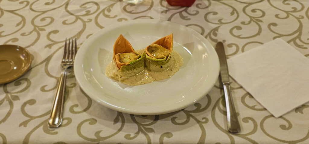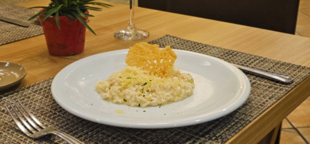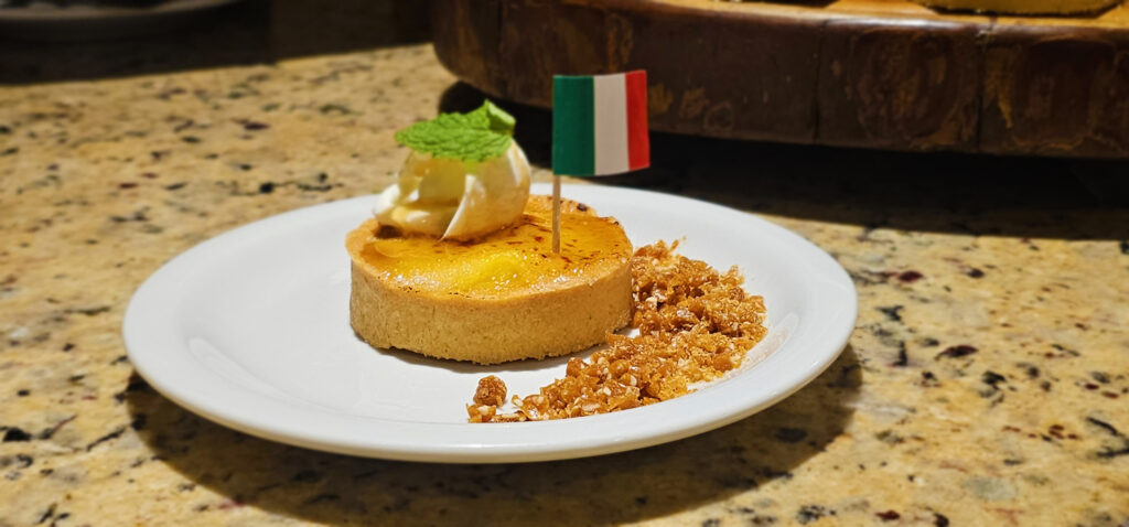 Para a elaboração do cardápio, a chef Ellen Tissiana se inspirou nos vinhedos, nas colinas e no perfume das ervas frescas da Toscana, na tradição e na elegância de Roma e nas paisagens ensolaradas e nos ingredientes delicados da Sicília. Os hóspedes poderão provar uma verdadeira sinfonia de sabores típicos em pratos como arroz alla toscana (feito com linguiça artesanal, vinho tinto e ervas frescas), saltimbocca alla romana (filé bovino com presunto de Parma, sálvia e vinho branco), tortellini di funghi al Marsala e tartufo bianco (massa recheada de cogumelos e toque de trufa branca), filetto di pesce alle erbe e burro bianco (peixe branco ao molho amanteigado com ervas) e panna cotta al limone e miele (creme leve de limão siciliano e mel de flores).