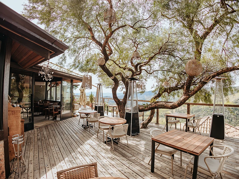 O Restaurante Shangri-La é conhecido por unir o rústico ao sofisticado, em um ambiente acolhedor que valoriza tanto o conforto quanto a boa mesa. Localizado em meio à natureza, oferece uma vista privilegiada do Vale da Lua Azul, cenário que transforma qualquer refeição em um momento memorável.