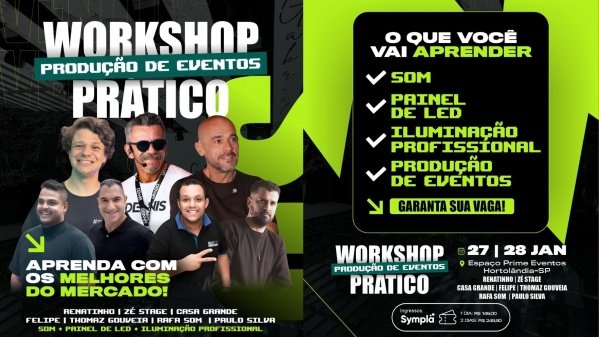 “A ideia do workshop é mostrar o que realmente funciona no mercado, sem romantizar, trazendo a vivência real de quem está no front dos grandes eventos”, destaca o produtor.